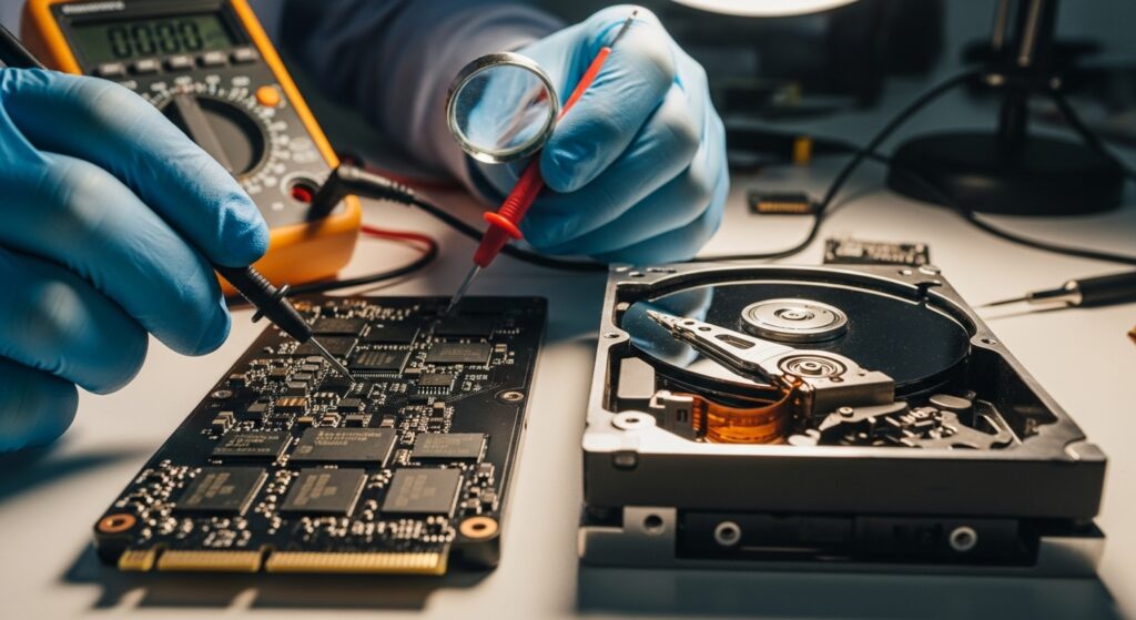 펌웨어 손상, 낸드칩 불량 등이 원인입니다.